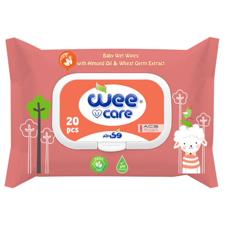 دستمال مرطوب کودک وی کر حاوی عصاره جوانه گندم و روغن بادام 20برگی