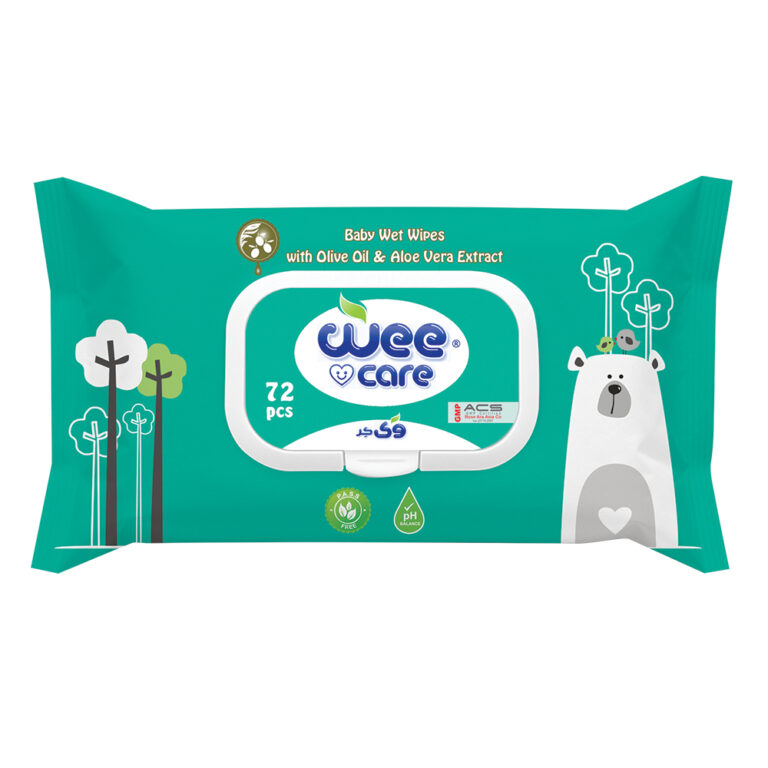 دستمال مرطوب کودک وی کر حاوی عصاره آلوئه ورا و روغن زیتون 72برگی