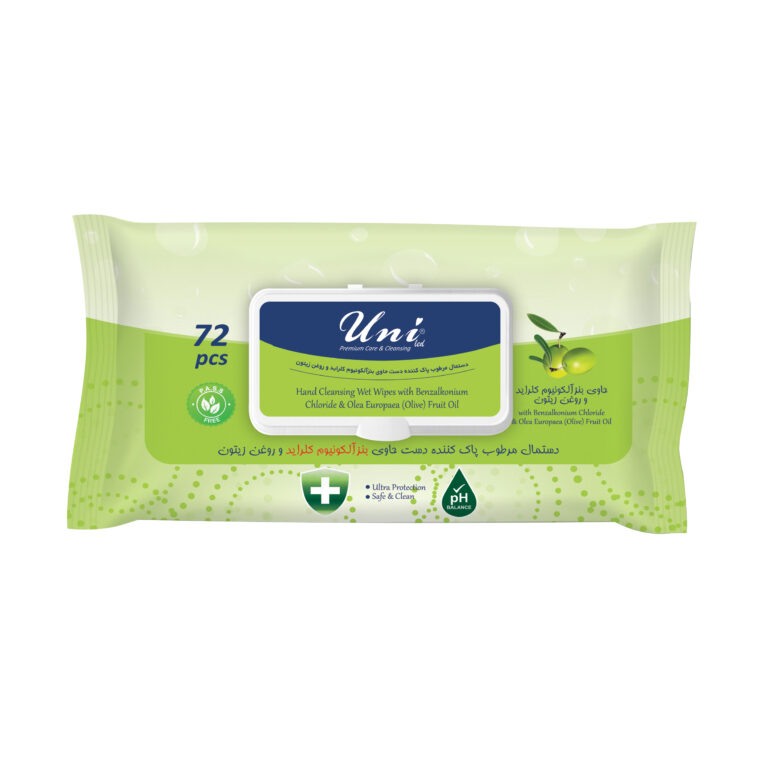 دستمال مرطوب ضد عفونی کننده یونی لد مدل آنتی باکتریال حاوی روغن زیتون 72برگی پاکتی