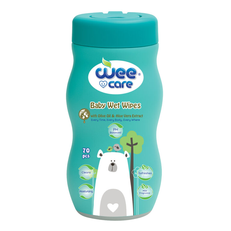 دستمال مرطوب کودک وی کر حاوی عصاره آلوئه ورا و روغن زیتون 70برگی