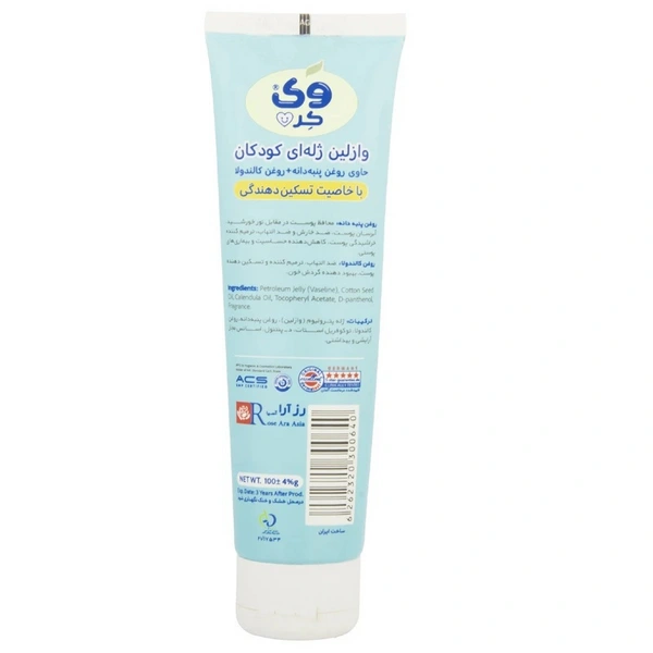 وازلین ژلهای کودک وی کر حاوی روغن کالاندولا و روغن پنبهدانه، محصولی مغذی و ملایم برای محافظت و مراقبت روزانه از پوست حساس نوزادان و کودکان است. این وازلین با ایجاد یک لایه محافظ سبک و تنفسپذیر، از خشکی، ترک و تحریکات پوستی جلوگیری کرده و رطوبت طبیعی پوست را حفظ میکند.
