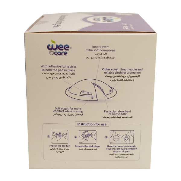 پد سینه یکبار مصرف وی کر مدل Single Pack جعبه 20 عددی -(Wee Care-M1912) انتخابی بهداشتی و مطمئن برای مادران شیرده است که به دنبال راحتی و محافظت بیشتر در طول روز هستند. این پدها از 100% سلولز طبیعی ساخته شدهاند، بسیار نرم و لطیف بوده و با قدرت جذب بالا، از نشت شیر و خیس شدن لباس جلوگیری میکنند.
